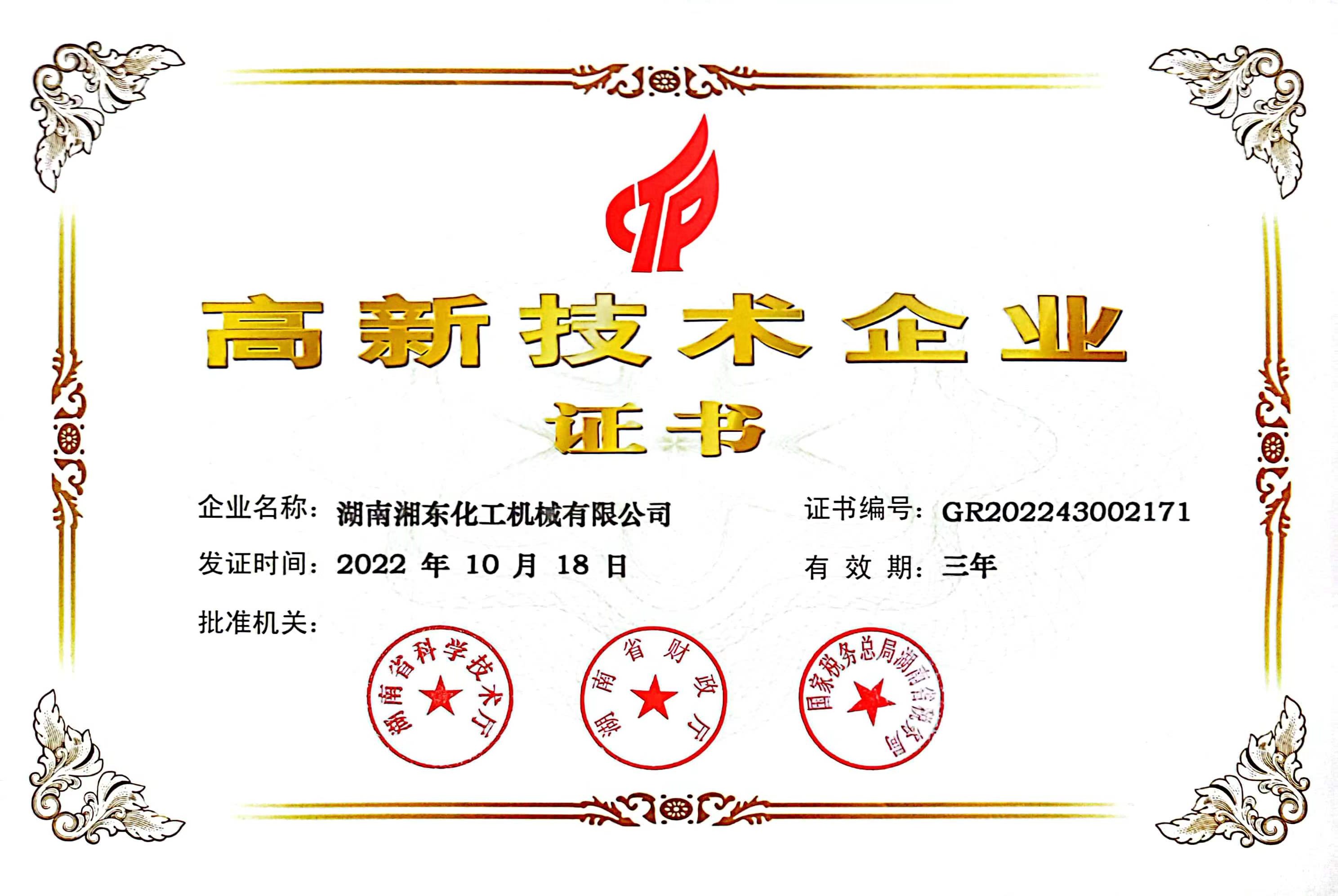 湖南省高新技術企業證書