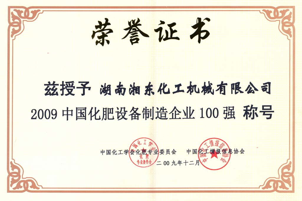 中國化肥設備制造企業100強