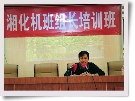 10月11日這一天,湖南湘東化工機械有限公司三樓培訓室掌聲不斷、笑聲不斷,70余人的培訓室坐的滿滿的,連過道里都坐滿了人,這里不是看電影,也不是聽報告,而是湘化機各分廠、分公司的基層班組長在這里聽培訓課。